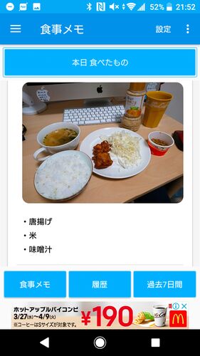 食事を記録したい。 私の求める条件は以下 ・別にダイエット目的じゃなくて、単に記録したいだけ。 ・栄養表示してくれてもいいけど、してくれなくてもいい。 ・大事なのはwebでもアプリでも見れること! ・写真で登録できること。打ち込むのめんどくさい 最…