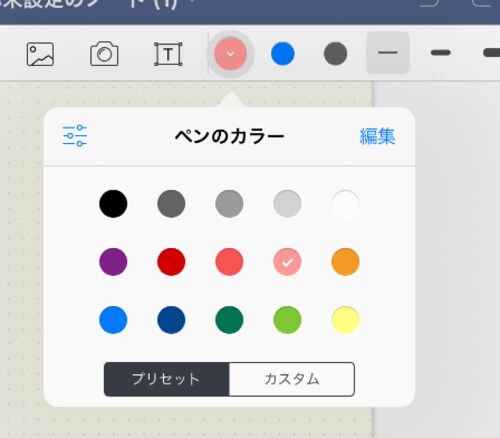 メモアプリやペイントアプリで、色を選択した時の表現。 全てiPadのアプリから ios標準のメモ帳 GoodNotes MediaBangPaint pixiv Sketch Sketches SketchBook AdobeSketch ios標準のメモ帳 ペン先の色変更+中に白い丸 GoodNotes ペンアイコンの色変更+矢印…