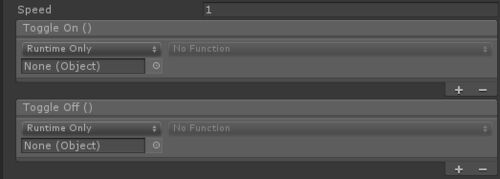 Buttonとかにくっついているあれを自分のスクリプトでつくる。多分UnityEventっていう。 作り方 using UnityEngine.Events; public UnityEvent ToggleOn = new UnityEvent();public UnityEvent ToggleOff = new UnityEvent(); それが呼び出されるところで? …