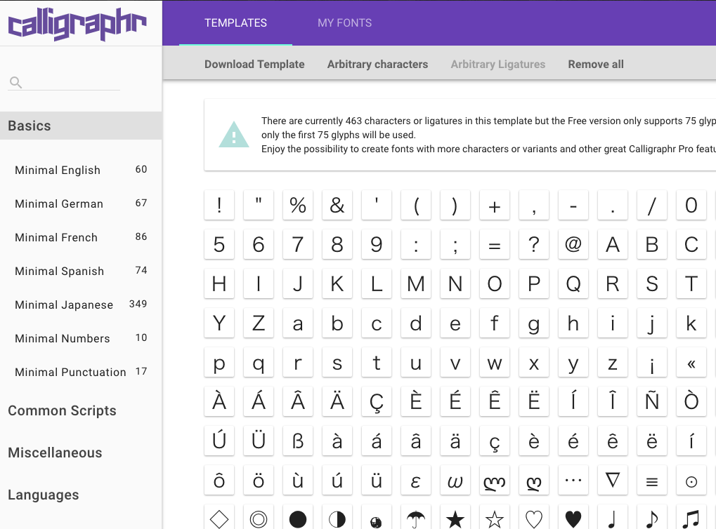 ただし無料版では75文字しか最終的なフォントファイルは出力できないので迷いますね。