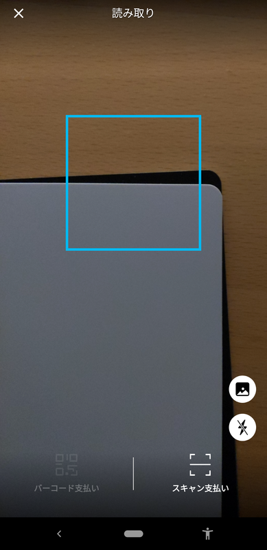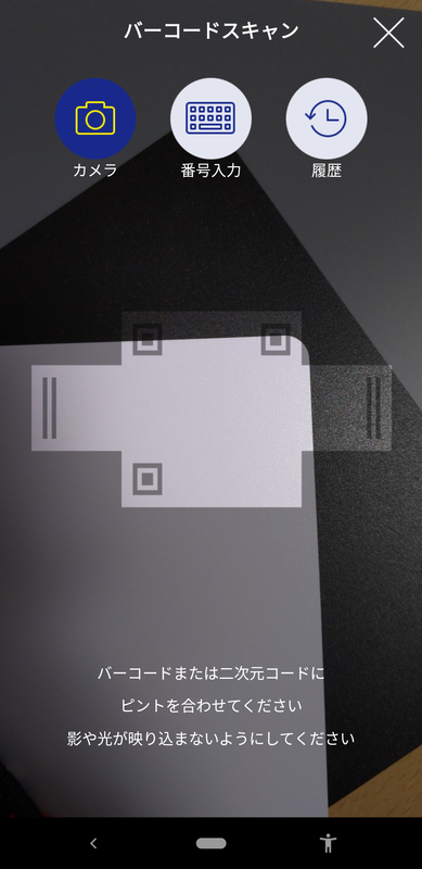 ・バーコードの読み取りはカメラ画面全体を不透明グレーにして、読み取る形の部分だけ透明度100%にする