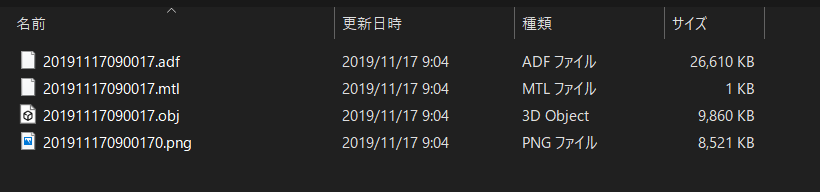 スキャンした後は、共有でobjとテクスチャがzipで固まったものが出る。今回はGoogleDriveに共有した。