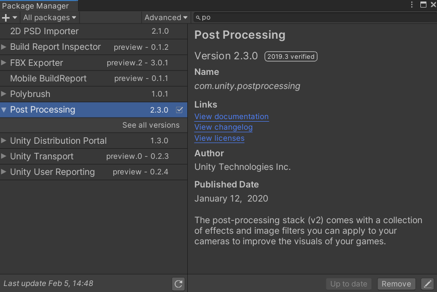 カメラにPostProcessingLayerを付ける