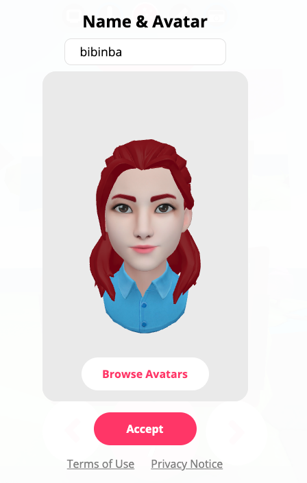 Create a Roomして左上のハンバーガーメニューからSet a Name & Avatar