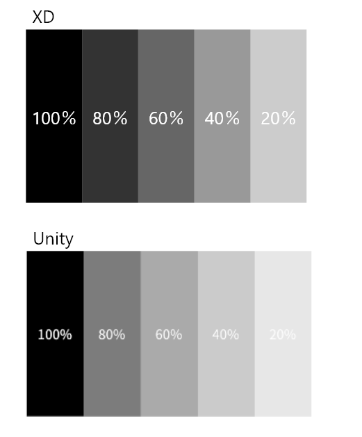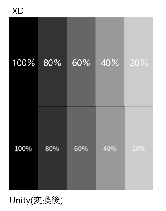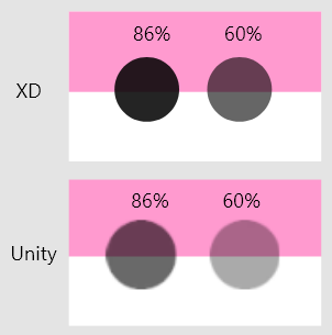 黒の時はUnityのほうがXDより不透明度が高くする必要があるが白は逆。