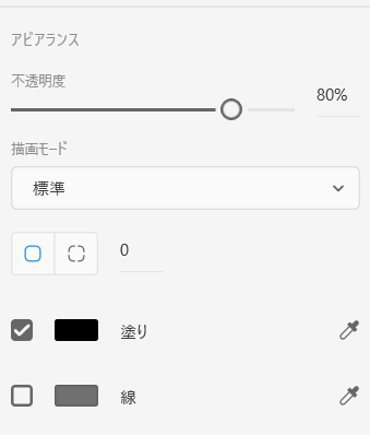 手前の色と後ろの色の組み合わせによって正しい透明度が変わるので、どちらも設定する必要がある。一番上のTransparencyではXDで設定した不透明度をいれる。