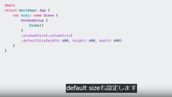 windowStyleをvolumetricにする。デフォルトサイズも設定