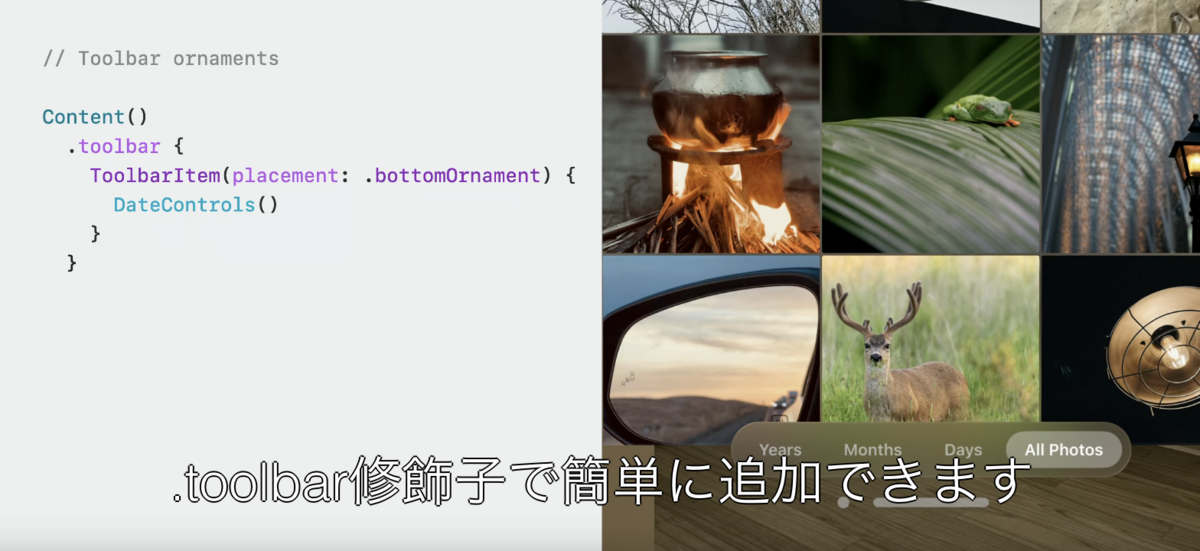 前回WWDCの動画を見た時SpatialComputingのUIの話は見たが、SwiftUIの動画は見なかった