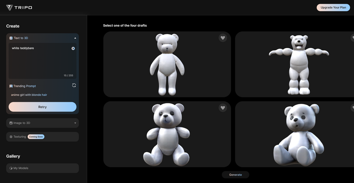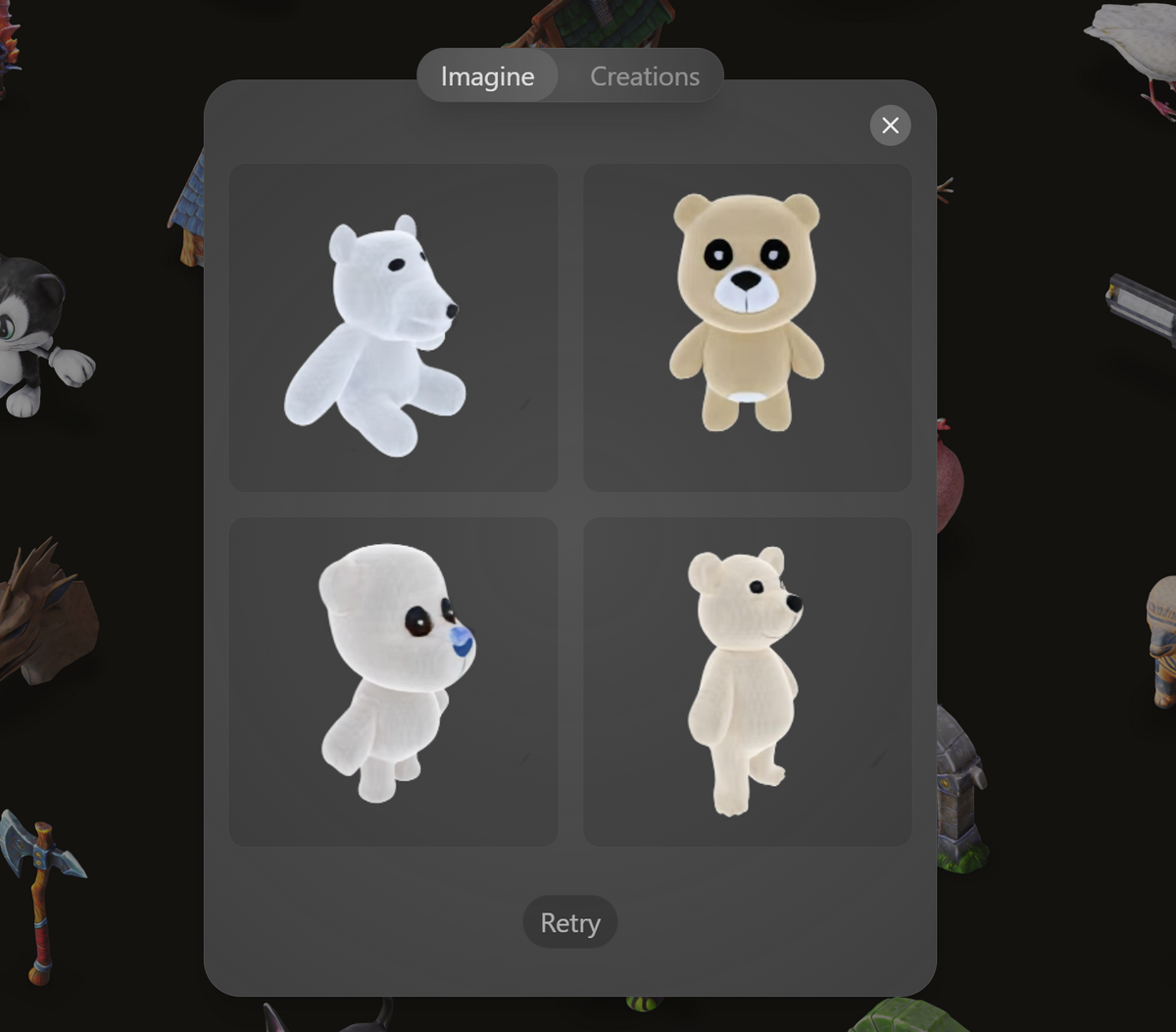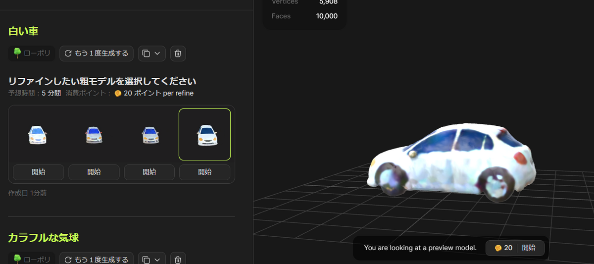 キーワードに近い他の人がすでに生成したモデルが表示された。クオリティたっか