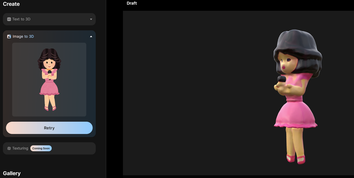 Meshy初めて触ったかと思ったら、テクスチャ生成で昔触ってた