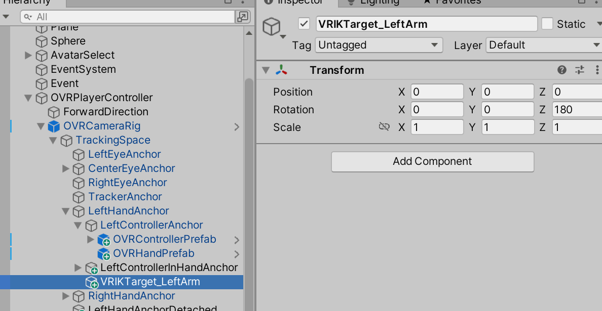 これはVRIKで参照しているGameObjectの角度を変えるといい感じになった。