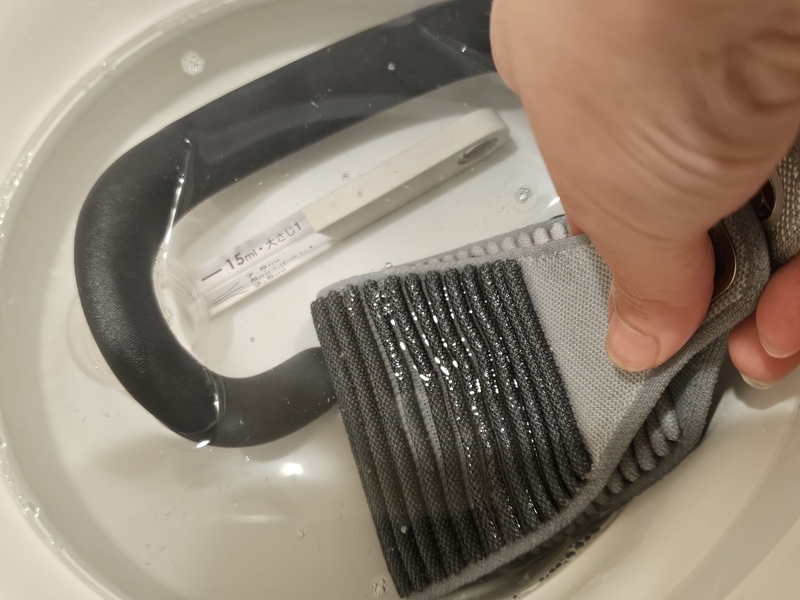 Vision Pro、購入してから使っているソロニットバンドが汚れてきたので洗うことにしました。公式HPに従って、ボールにぬるま湯と食器用洗剤を入れて手洗い。洗う水を何度か変えるほど汚くてびっくり。これからはもう少し頻繁に洗います。https://t.co/Wi5JO8O0XY pic.twitter.com/PZzGzCarcg