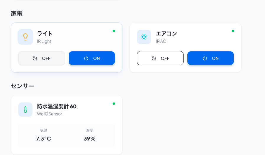 Hub miniで登録した家電も操作できるようにした。エアコンはうまく動かないけどライトは動いた