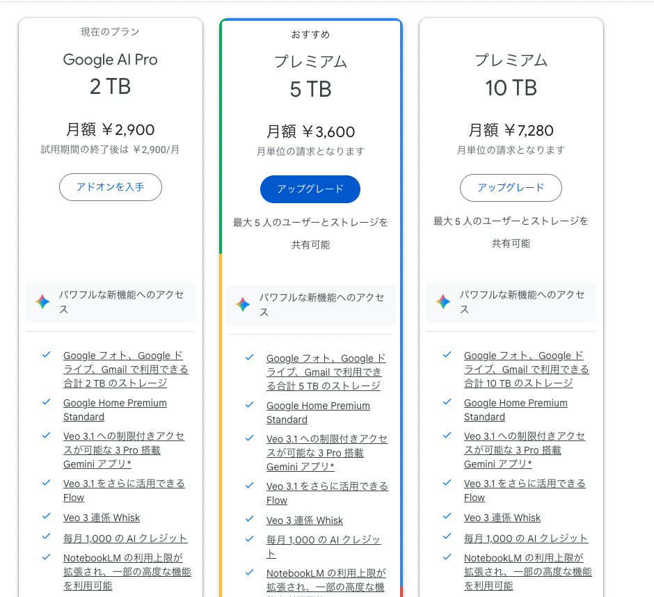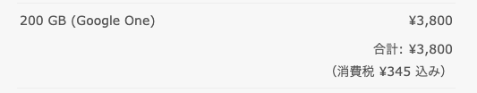元々ストレージのためにGoogle Oneには課金していた。これは1年で3800円で200GBか